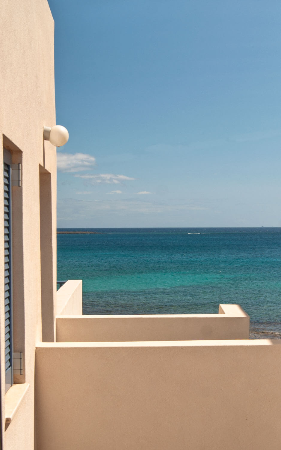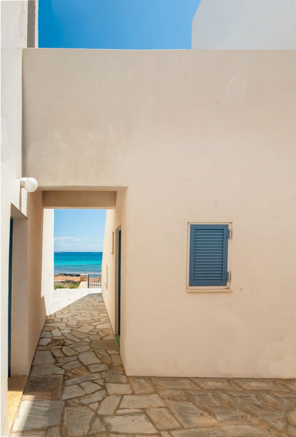 The client's desire was to build a new two-appartment building, along with a new garage capable of accommodating a car and a boat. In order to not deprive his nearby properties of the view towards the sea, the optical cone that has its fulcrum in the living room of the existing house has been kept free of constructions.