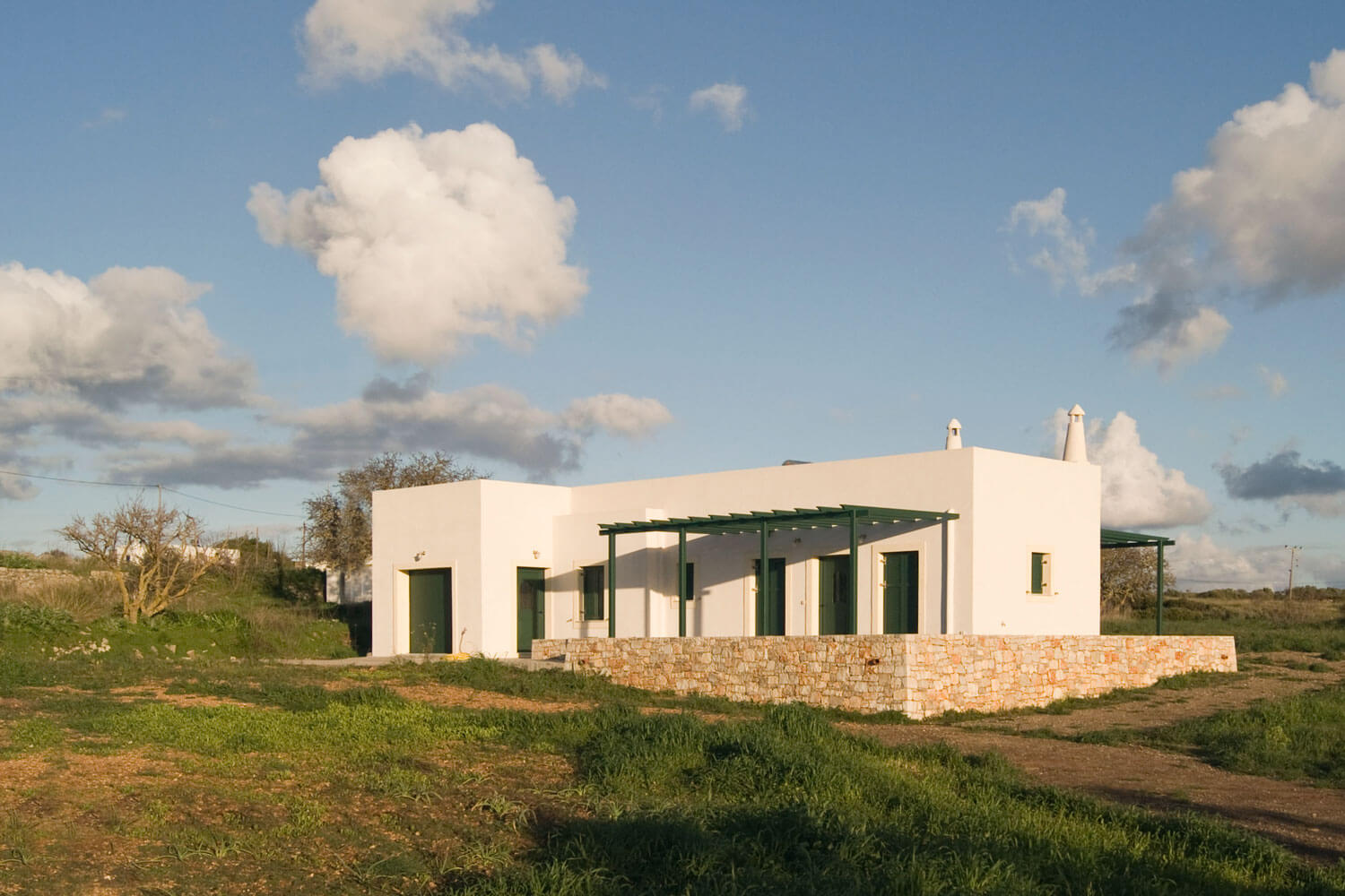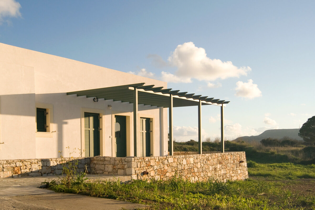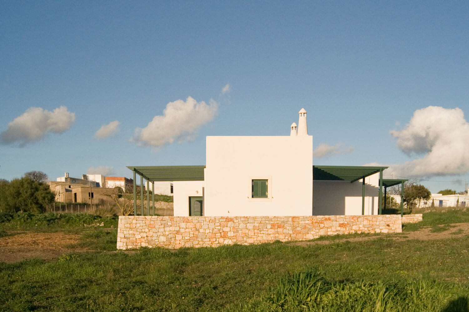 The building houses the owner's apartment and a garage. The roof parapets were built at different heights, in order to achieve integration of the building with the traditional architectural canons of the settlement, but also to cover the air conditioning fixtures positioned on the roof.